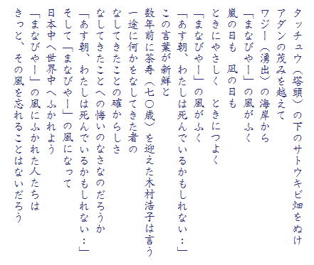 「土の会」の仲間が、病いや障害をどのように生きてきたのか『土の宿から「まなびやー」の風がふく』の一節紹介。